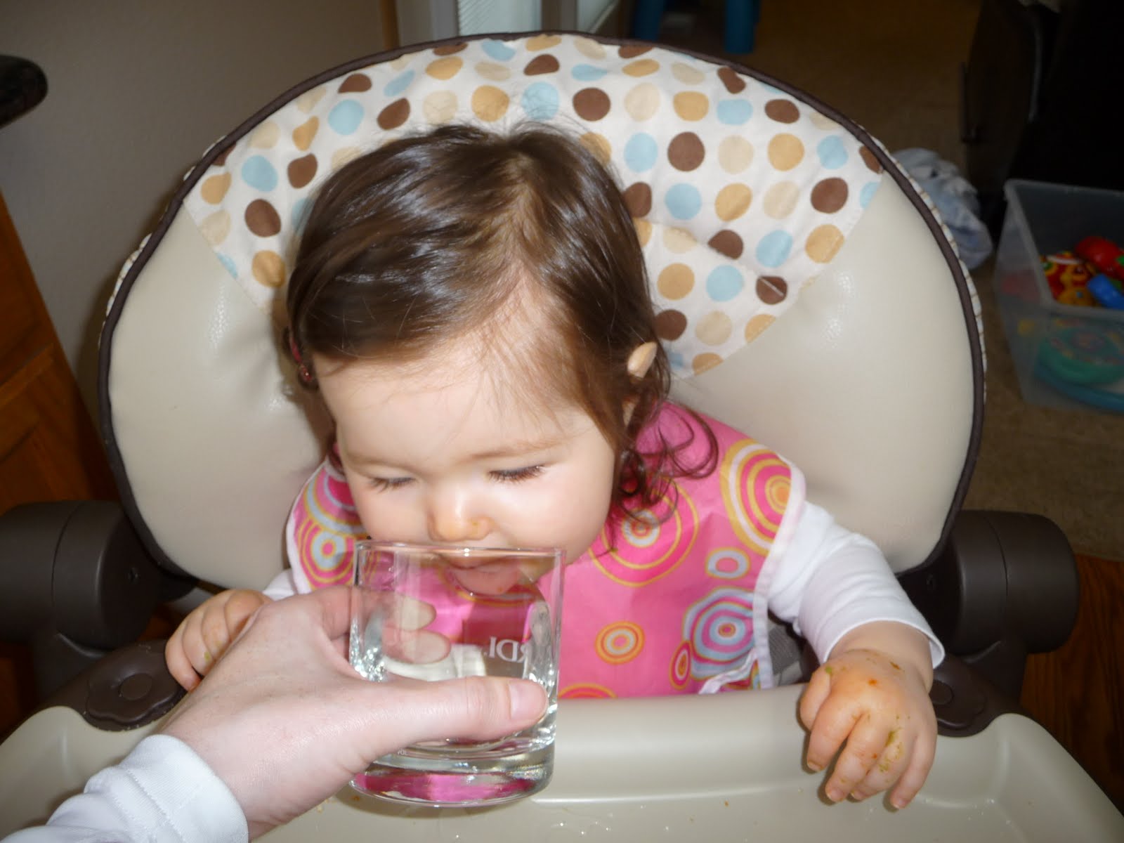 At 9 months old, Alli began saying "Uh!" each time something fell on the floor. We kept waiting for her to tack on the "oh" at the end, but she's just too efficient for that. The great debate: Do we